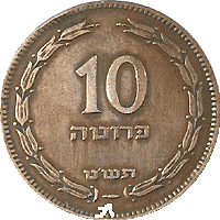 | 10 prutah | 27.0 | 6.1 | Smooth | Bronze | Medal |