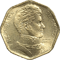 | Effigy of Bernardo O'Higgins. Around it the words "Republic of Chile" in Spanish. To the right of the effigy, in small letters, the phrase, "Liberator B. O'Higgins". To the left, the mint mark or manufacturer's symbol. |