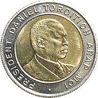 President Arap Moi bust facing right in the center. Inscription along the rim. Daniel Toroitich arap Moi (born Sept. 2, 1924) was the President of Kenya from 1978 until 2002. |