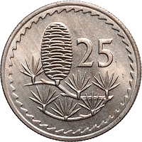 | The inscriptions along the rim: 'REPUBLIC OF CYPRUS' in Greek and in Turkish. In the center: coat of arms. Above of shield - the year of minting. |